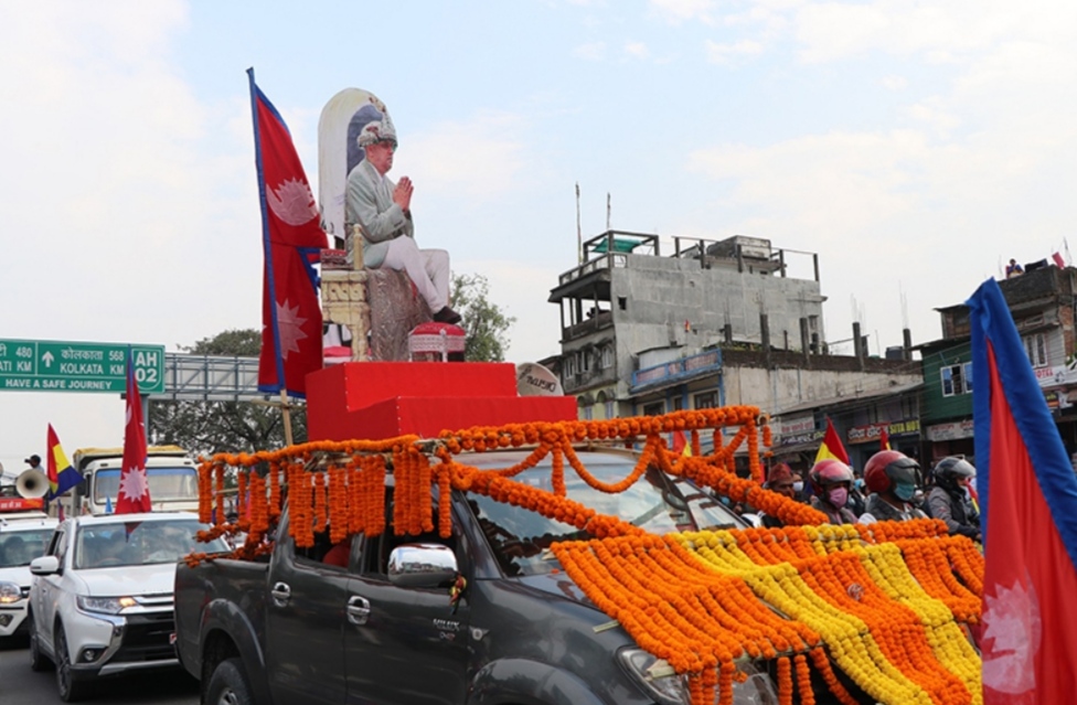 राजसंस्था तथा हिन्दुराष्ट्रको माग गर्दै राष्ट्रिय प्रजातन्त्र पार्टीको आयोजनामा झापामा शनिवार विशाल प्रदर्शन भएको छ । राप्रपाले संघीयता खारेजीको पनि माग गर्दै प्रधानमन्त्री केपी शर्माको गृह जिल्लामा प्रदर्शन गरेको हो । प्रदर्शनका लागि जिल्लाका १५ वटै स्थानीय तहबाट नागरिकहरु पूर्वी नाका काँकडभिट्टा पुगेका थिए । दिउँसो साढे दुई बजे काँकरभिट्टाबाट एकीकृत ¥याली प्रारम्भ भएको थियो । राप्रपाले मोटर तथा मोटरसाइक ¥यालीको आयोजना गरेर प्रदर्शन गरेको हो । ¥यालीमा सयौंले सहभागिता जनाएका थिए । ¥यालीपछि बिर्तामोडमा भएको कार्यक्रमलाई सम्बोधन गर्दै राप्रपा नेता राजेन्द्र लिङदेन लगायतले राजसंस्था र हिन्दूराष्ट्र मुलुकको आवश्यकता भएको बताए । राजसंस्था र हिन्दुराष्ट्रको पुनःस्थापना, संघीयताको खारेजी, भ्रष्टाचार नियन्त्रण, कोरोना व्यवस्थापनमा सरकारको असक्षमता, रासायनिक मलको अभावलगायत जनजीविकासँग सम्बन्धित विषयमा जनदवाब सिर्जना गर्न ¥यालीको आयोजना गरिएको राप्रपाले जनाएको छ ।