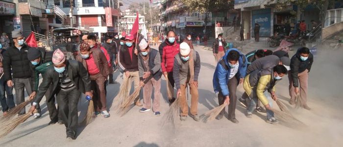 बजार बन्दमा निस्किएका नेकपा प्रचण्ड–माधव समूहका प्रतिनिधि सभा सदस्य श्यामकुमार श्रेष्ठ, जिल्ला इञ्चार्ज देवशङ्कर पौडेल, जिल्ला अध्यक्ष मयनकुमार मोक्तानलगायतको टोलीले मन्थलीको पुरानो कटहरबोटदेखि तामाकोशी सेवा समितिसम्मको सडक र पेटी बढारेर सफा गरेका हुन् । सडक सफा भएपछि उनीहरुले विरोध स्वरुप मन्थलीको देवकोटा चोकमा दिनभर सडक अवरुद्ध गरि नाचगान गरेका छन् ।