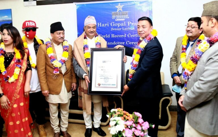 गीतकार हरिगोपाल प्रधानले हवाइजहाजभित्र साङ्गीतिक एल्बम विमोचन गरेर विश्व कीर्तिमान कायम गरेका छन् । उनले फेब्रुअरी १, २०२१ मा काठमाडौंदेखि नयाँ दिल्लीका लागि उडेको नेपाल वायु सेवा निगमको जहाजभित्र तीन हजार ६०० फिट उचाइमा शहरी विकास राज्यमन्त्री रामवीर मानन्धरमार्फत ‘मुटुमा सधैँभरी’ साङ्गीतिक एल्बम विमोचन गरेर विश्व कीर्तिमान कायम गरेका हुन् । उक्त साङ्गीतिक एल्बममा राष्ट्रिय समाचार समिति (रासस) का फोटो पत्रकार प्रदीपराज वन्त र सिर्जना डङ्गोलको मोडलिङ तथा आरती लक्ष्मी खड्गीले कोरियोग्राफी गरेका छन् । उपराष्ट्रपति नन्दबहादुर पुनले वरिष्ठ गीतकार प्रधानलाई आज वल्र्ड बुक अफ रेकर्डस् नेपालको तर्फबाट सम्मान गरेका छन् । कार्यक्रममा उपराष्ट्रपति पुनले विश्व कीर्तिमानले नेपाली र नेपालको शिर ठाडो बनाएको बताए । “संसारमा कसैले नगरेको काम गरेर नयाँ रेकर्ड बनाउने काम आफैमा गाह्रो काम हो, तपाईले रेकर्ड राखेर नेपालीको शिर ठाडो पार्नुभएको छ,” उनले भने । शहरी विकास राज्यमन्त्री मानन्धरले साङ्गीतिक क्षेत्रको नमूना देश नेपाल भएको जनाउँदै यसलाई अन्तर्राष्ट्रियस्तरमा चिनाउन जरुरी रहेको बताए । नेपालीहरुले धेरै क्षेत्रमा वल्र्ड रेकर्ड बनाइसकेको उनको भनाइ थियो । गीतकार प्रधानले सबैको साथ, सहयोगका कारण आफूले विश्व रेकर्ड बनाउन सफल भएको बताए । सोही अवसरमा वल्र्ड रेकर्ड बनाउन विभिन्न क्षेत्रबाट सहयोग गर्ने व्यक्ति तथा संस्थालाई सम्मान गरिएको थियो ।