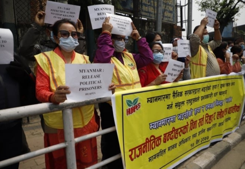 मानव अधिकार तथा शान्ति समाजले हत्या र दमनको निन्दा एवं भर्त्सना, राजनीतिक बन्दीहरुको बिनासर्त रिहाइ र लोकतन्त्र बहालीको मागसहित प्रदर्शन गरेको हो।