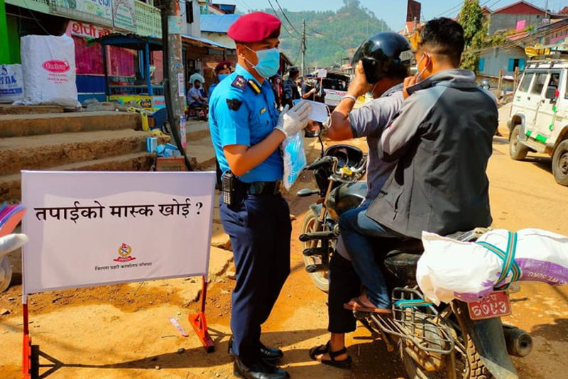 साथै तोकिएको मापदण्ड उल्लंघन गर्ने एक हजार चार सय ६५ जनालाई संक्रामक रोग ऐन, २०२० बमोजिम जरिवाना गरिएको छ। मास्क तथा स्यानिटाइजरको सहि प्रयोग र नियमित मास्क लगाउन प्रहरीले सबैमा अनुरोध समेत गरेको छ। कोभिड–१९ को संक्रमण रोक्न नेपाल सरकार स्वास्थ्य मन्त्रालयद्वारा तोकिएको सुरक्षा मापदण्डलाई दुरुस्त रुपमा कार्यान्वयनका लागि नेपाल प्रहरीले ‘तपाईंको मास्क खै ?’ लगायतका विभिन्न सचेतनामूलक कार्यक्रमलाई अभियानकै रुपमा सञ्चालन गरेको हो।
