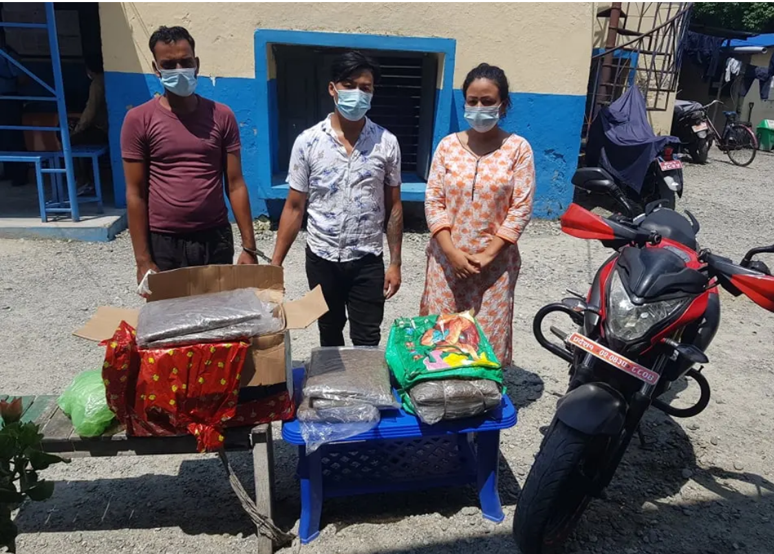 सुनसरी । इलाका प्रहरी कार्यालय इटहरीले २१ किलो गाँजासहित दुईजनालाई पक्राउ गरेको छ । प्रहरी सुनसरीको इटहरी १२ बाट सवारी साधन चेकजाँच गर्ने क्रममा विराटनगरतर्फ जाँदै गरेको प्र–१–०२–०४३ प ८८०४ नम्बरको मोटरसाइकलमा सवार दुईजनालाई गाँजासहित पक्राउ गरेको हो । पक्राउ पर्नेमा धनकुटा सांगुरीगढी गाउँपालिका ८ घर भई हाल इटहरी-४ मा कोठाभाडामा बस्दै आएका २७ वर्षीय दीपेन्द्र राई र मोटरसाइकलको पछाडि सवार उनकी श्रीमती २५ वर्षीया शर्मिला राई रहेको इलाका प्रहरी कार्यालय इटहरीले जनाएको छ ।