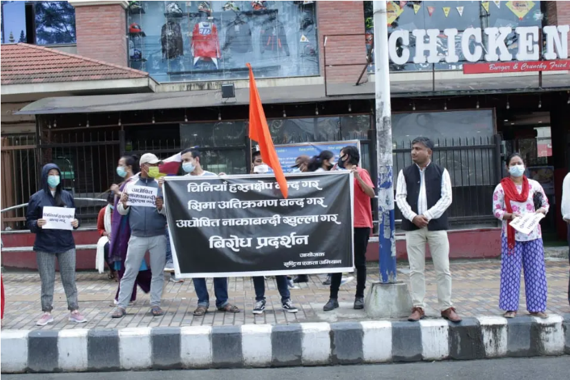 काठमाडौं । नेपाली भूमि अतिक्रमण गरको भन्दै चीनविरुद्ध काठमाडौंमा प्रदर्शन गरिएको छ । हुम्लास्थित नेपाली भूमि चीनले अतिक्रमण गरेको विरोधमा राष्ट्रिय एकता अभियानले सोमवार प्रदर्शन गरेको हो । अभियानले माइतीघर मण्डलामा चीन विरुद्ध प्रदर्शन गर्दै चिनियाँ राष्ट्रपति सी चिङपिङको पुत्ला समेत दहन गरेको छ । चिनियाँ राष्ट्रपतिको पुत्ला दहन गर्दै अभियानका केन्द्रीय संयोजक विनय यादवले चीनद्वारा विभिन्न बाहानामा बारम्बार नेपाली भूमि अतिक्रमण भइरहेको बताए ।