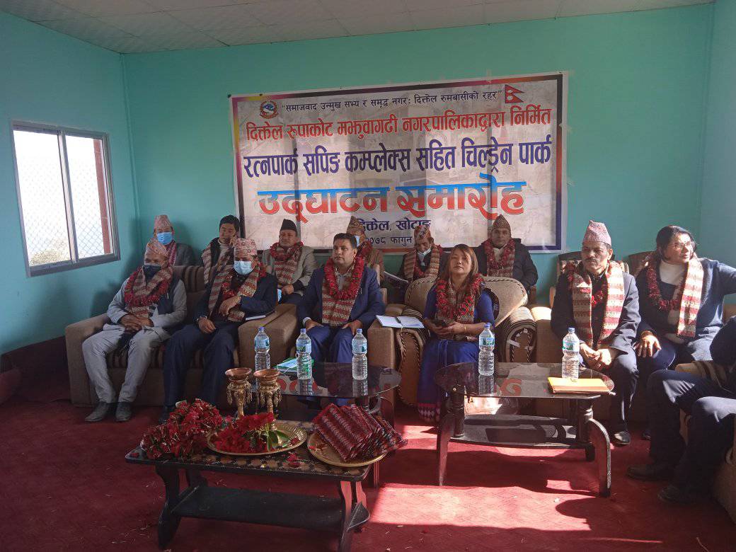 चार करोड ३७ लाख ८४ हजार ७५१ रुपैयाँ तयार पारिएको सपिङ कम्प्लेक्स र चिल्ड्रेनपार्क निर्माण मंगलबार दिक्तेल रुपाकोट मझुवागढी नगरपालिकाका मेयर दिपनारायण रिजाल र उपमेयर बिणादेबी राईले उद्घाटन गरेका छन् । निर्माण कम्पनी उमा–लामा–अनशुबी जेभीले ठेक्का लिएको सपिङ कम्प्लेक्स र चिल्ड्रेनपार्क गत ६ जेठमा शिलान्यास गरिएको थियो ।