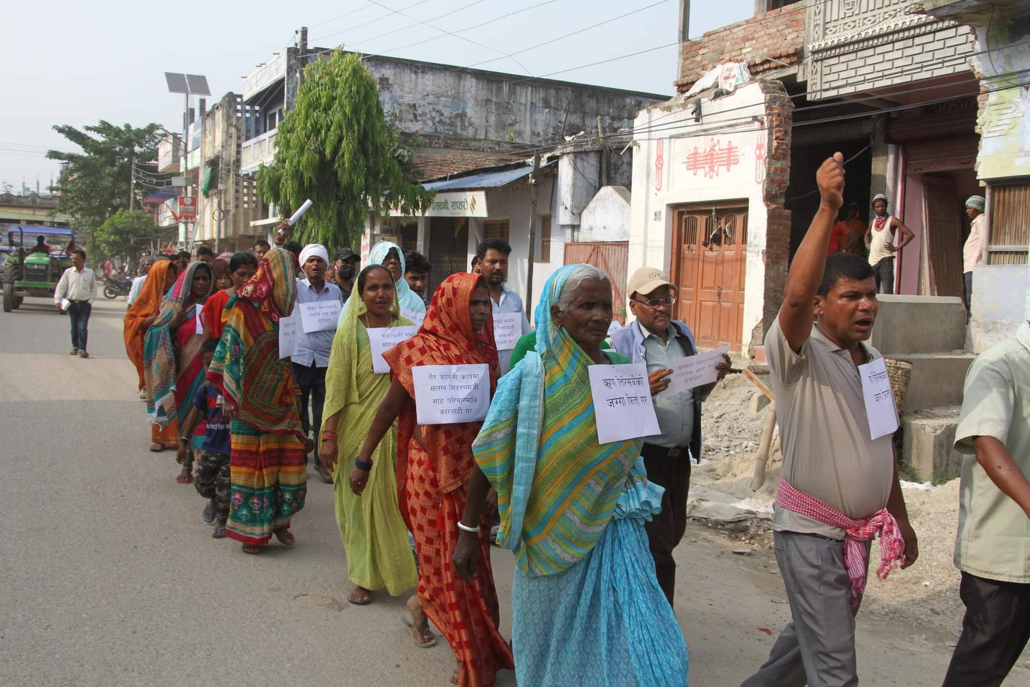 जुलुसमा सहभागी पीडितहरूले गैर कानुनी कार्यमा संगलन मिटरब्याजी साह परिवार माथि कारबाही गर, विपन्नलाई बिस्थापित गराउने मिटरब्याजी साह परिवारमाथि कारबाही गर, बलात्कारी रामदेव साह मुर्दाबाद , मिटरब्याजी रामदेव साहलाई पक्राउ गर भन्दै नारा लगाउँदै प्रदर्शन गरेका थिए ।