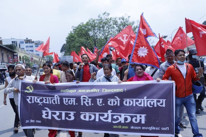 एमसीसी कार्यालयअघि विप्लप माओवादीको प्रर्दशन