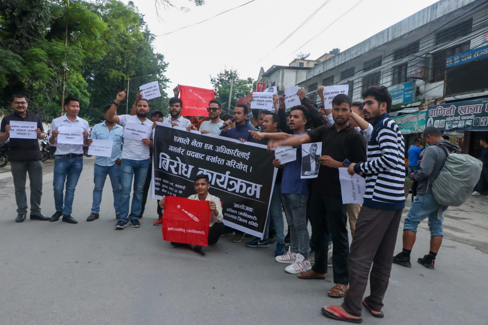 गभर्नर अधिकारीको बर्खास्ती माग गर्दै अखिल क्रान्तिकारीको प्रदर्शन