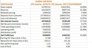 ग्लोबल आईएमई बैंकले बढायो नाफा