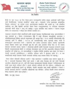 Khanal expressed disappointment in the actions of leftist leader Dahal, accusing him of making an “unimaginable anti-national agreement with India” against the expectations and desires of the Nepali people.